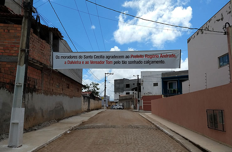(15), as obras de pavimentação, meios-fios, rampas e passeios do Loteamento Santa Cecilia para alegria das centenas de famílias que moram no local. Na inauguração participaram autoridades como o ex-prefeito Euvaldo Rosa, o ex-vice-prefeito Faustino Cunha, além de vereadores, secretários e outras lideranças.