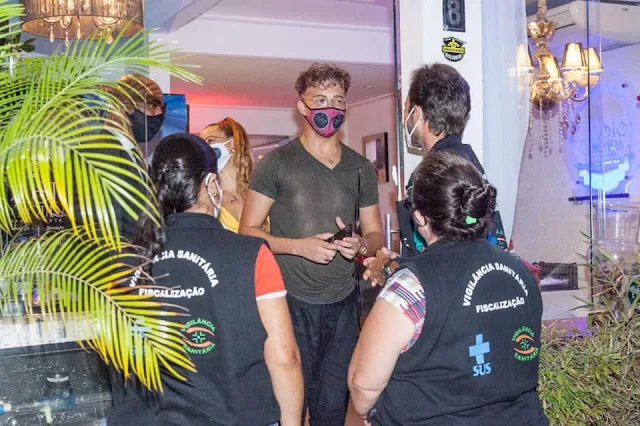 A equipe da Vigilância Sanitária percorreu estabelecimentos e conversou com os proprietários, artistas e clientes a respeito da importância do uso da máscara, higienização constante das mãos e distanciamento social, bem como demais protocolos estabelecidos em lei.