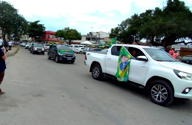 Com bandeiras do Brasil penduradas nos carros, a manifestação saiu da localidade da Praia do Dendê BR-101, via o Centro de Santo Antônio de Jesus passando pela entrada do São Benedito.