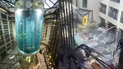 Um aquário gigante contendo um milhão de litros de água explodiu, inundando o hotel onde está localizado e as ruas próximas, em Berlim, na Alemanha.